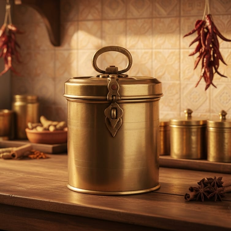 CSB/04 - Vintage Brass Cylindrical Lockable Box With Handle | KITCHENWARE | UTENSILS | HOME APPLIANCES
