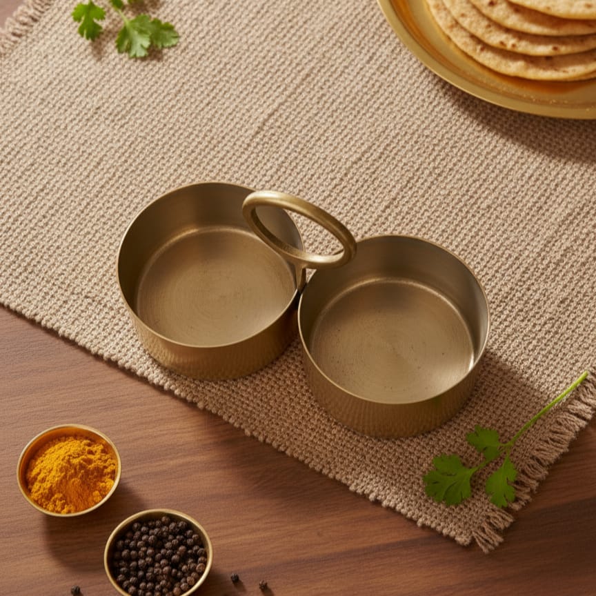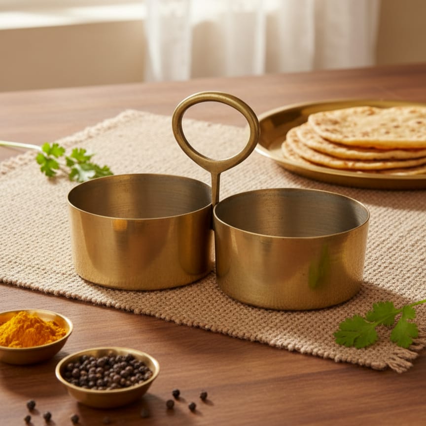 Discover authentic craftsmanship with this exceptional set of two vintage brass serving bowls. Handcrafted from 100% pure brass, these rare pieces showcase the superior quality and durability characteristic of traditional kitchenware. Each bowl features a timeless design perfect for serving, storage, or display. The natural patina and weight of genuine brass reflect their age and authenticity. Ideal for collectors and those seeking functional vintage pieces that add warmth and character to any kitchen or dining space. A testament to enduring artisanal excellence.