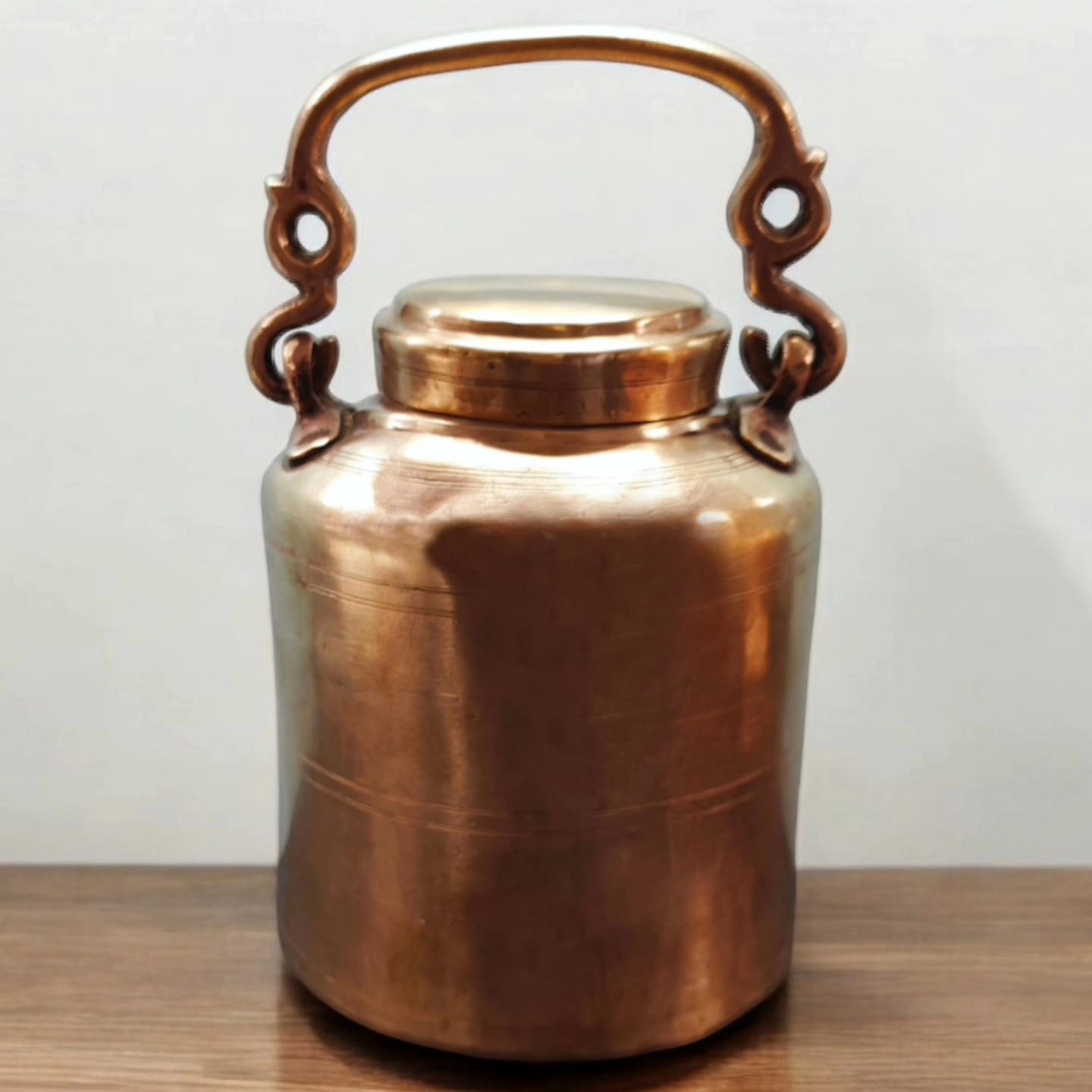 This Antique Brass Canister is designed with a strong handle and an airtight lid, ensuring the contents stay fresh. Its large size makes it ideal for storing milk, ghee, or oil, while adding a touch of vintage charm to your kitchen. Crafted with sturdy brass for long-lasting use.