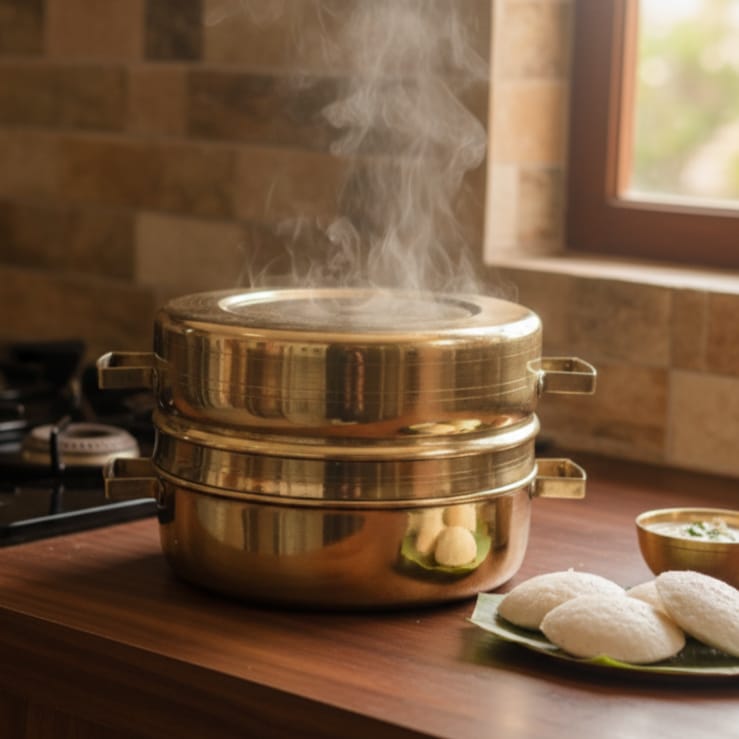 This exceptional vintage modak patra represents a masterpiece of traditional Indian metalwork. Handcrafted from pure brass, this authentic steamer vessel showcases the distinctive geometric design characteristic of genuine antique kitchen implements. The modak patra's unique shape was engineered for optimal steam distribution when preparing traditional modaks and other delicacies. Its substantial brass construction ensures durability and superior heat conductivity, making it both a functional kitchen tool and a remarkable collector's piece. The patina and wear patterns reflect genuine age and authentic use. Perfect for culinary enthusiasts, heritage collectors, and those seeking to preserve traditional cooking methods. A rare find that bridges culinary history with functional artistry.