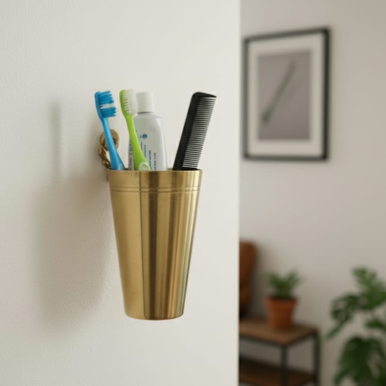OT/09 - Rare Vintage 100% Pure Brass Wall-Mounted Glass Holder | KITCHENWARE | UTENSILS | HOME APPLIANCES
