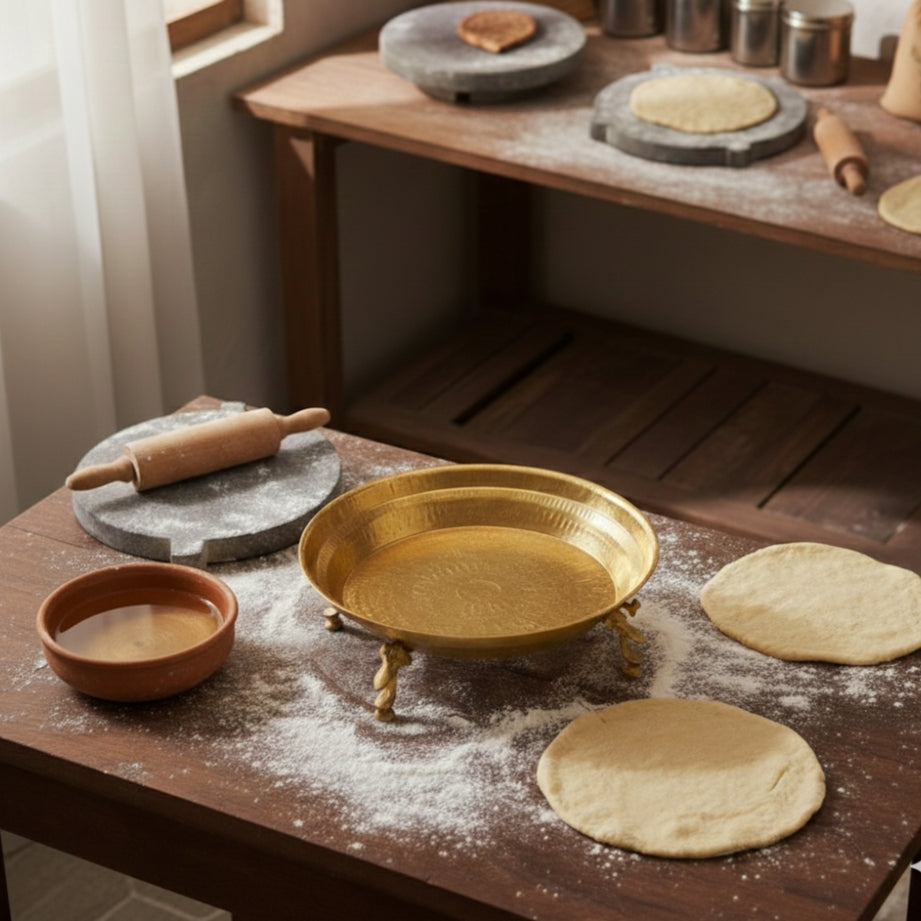 PPL/01 - Original Vintage Pure Brass Parath On Peacock Legs For Dough | KITCHENWARE | UTENSILS | HOME APPLIANCES