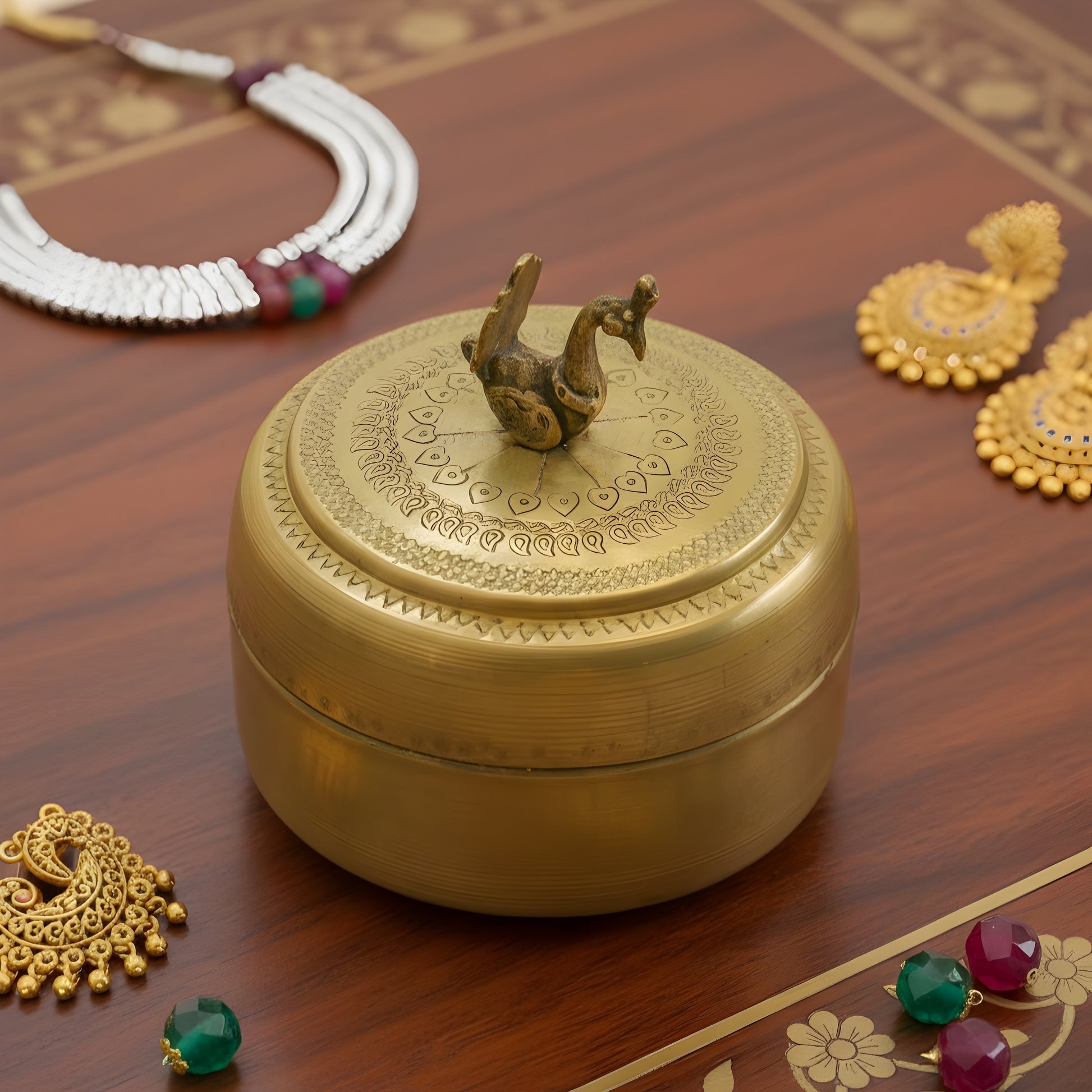RSB/02 - 100% Pure Brass Vintage Style Beautifully Engraved Matt Look Trinket Box with Bird on top | KITCHENWARE | UTENSILS | HOME APPLIANCES